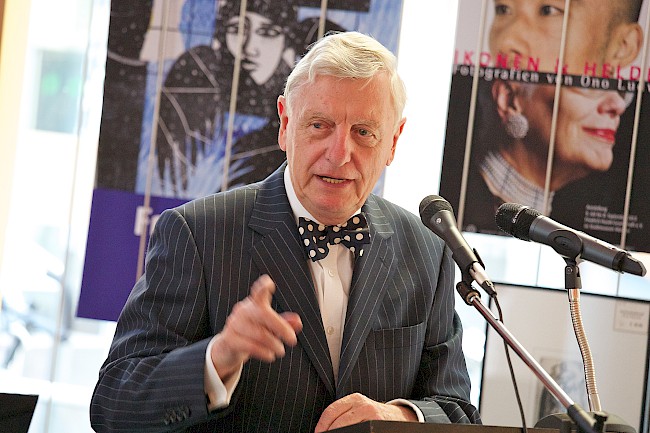 Foto: Der Gründungsdirektor und langjährige Leiter des Stadtmuseums Münster Hans Galen bei einer Feier zu seinem 80. Geburtstag 2013, fotografiert im Stadtmuseum Münster. Foto: Markus Bomholt, Münster/Hameln.