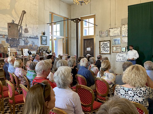 Eine tolle Veranstaltung mit einem attraktiven Programm an der münsterischen Hafenmeile ... Los ging es um 15 Uhr: Treffen und Begrüßung im Coppenrath Verlag im Speicher III, mit einer informativen Vorstellung des Coppenrath Verlags durch Dr. Lambert Scheer, im Hauptberuf Geschäftsführer des Verlags.Von dort aus ging es zur Führung in die Städtische Kunsthalle (Speicher II) durch Merle Radtke – verbunden mit einem Blick „hinter die Kulissen“. Danach ging es durch das Verlagsgebäude bis unters Dach ... Das war spannend! Ab 17 Uhr: Geselliges Beisammensein mit kleinen Speisen und Getränken im Coppenrath Verlag. Ein schöner Ausflug in die eigene Stadt. Die Nachfrage war so groß, dass es noch einen zweiten Termin gab.